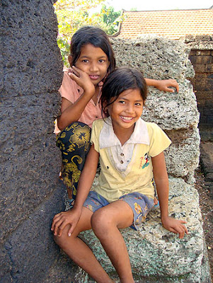 Two of the welcoming committee at Kohak Nokor - the numbers of kids grew steadily during our visit